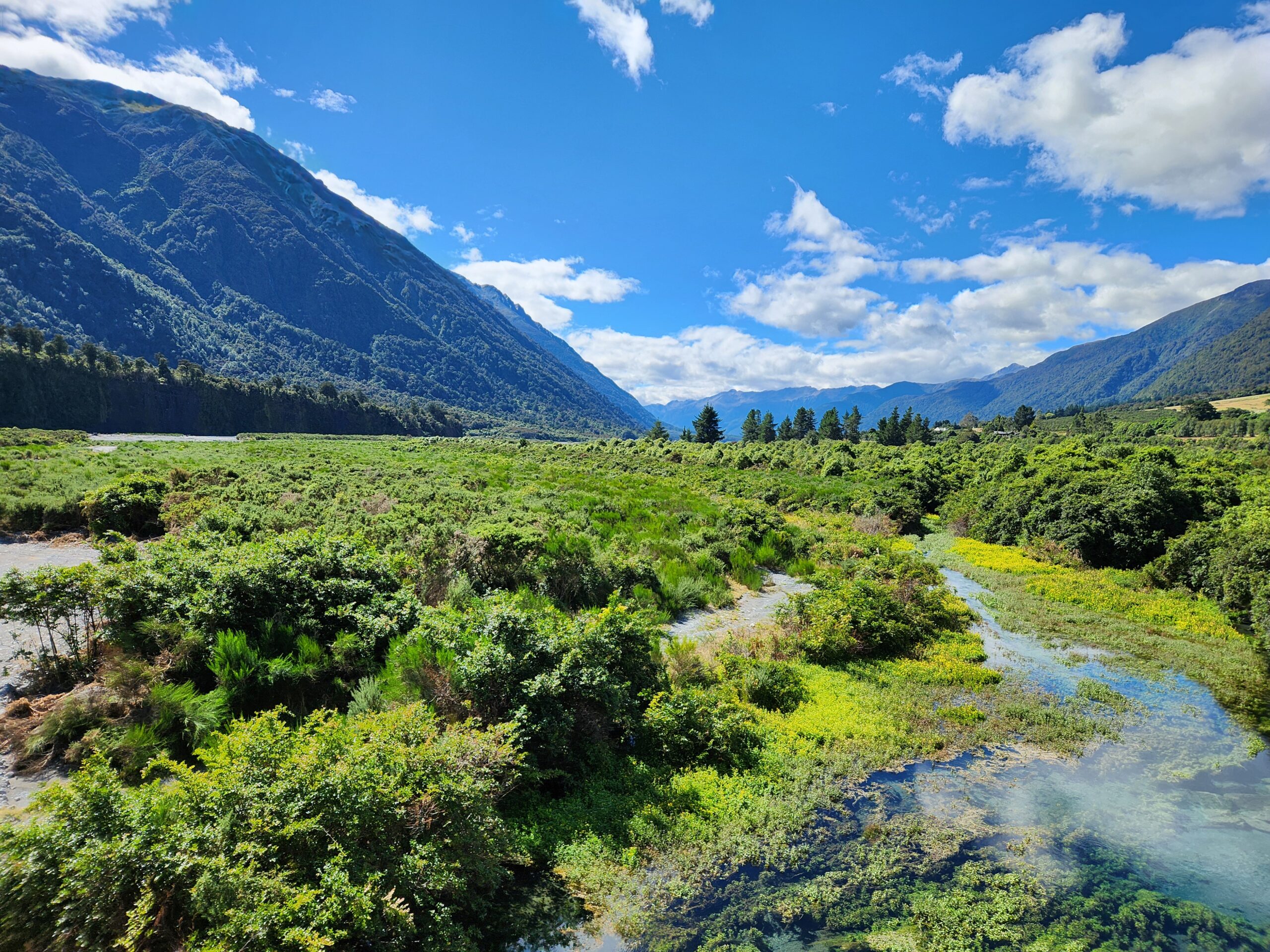 Today the Tranzalpine Railway brought us from Christchurch, on the east coast, to Greymouth, on the west coast of the south island. As we started, the trip was misty and cloudy, but as we climbed elevation across the Canterbury plain, the clouds cleared to a bright, sunny day. We then drove to our night’s beachside accommodation in Hokitika overlooking the Tasmanian Sea.