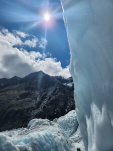 Today the Tranzalpine Railway brought us from Christchurch, on the east coast, to Greymouth, on the west coast of the south island. As we started, the trip was misty and cloudy, but as we climbed elevation across the Canterbury plain, the clouds cleared to a bright, sunny day. We then drove to our night’s beachside accommodation in Hokitika overlooking the Tasmanian Sea.